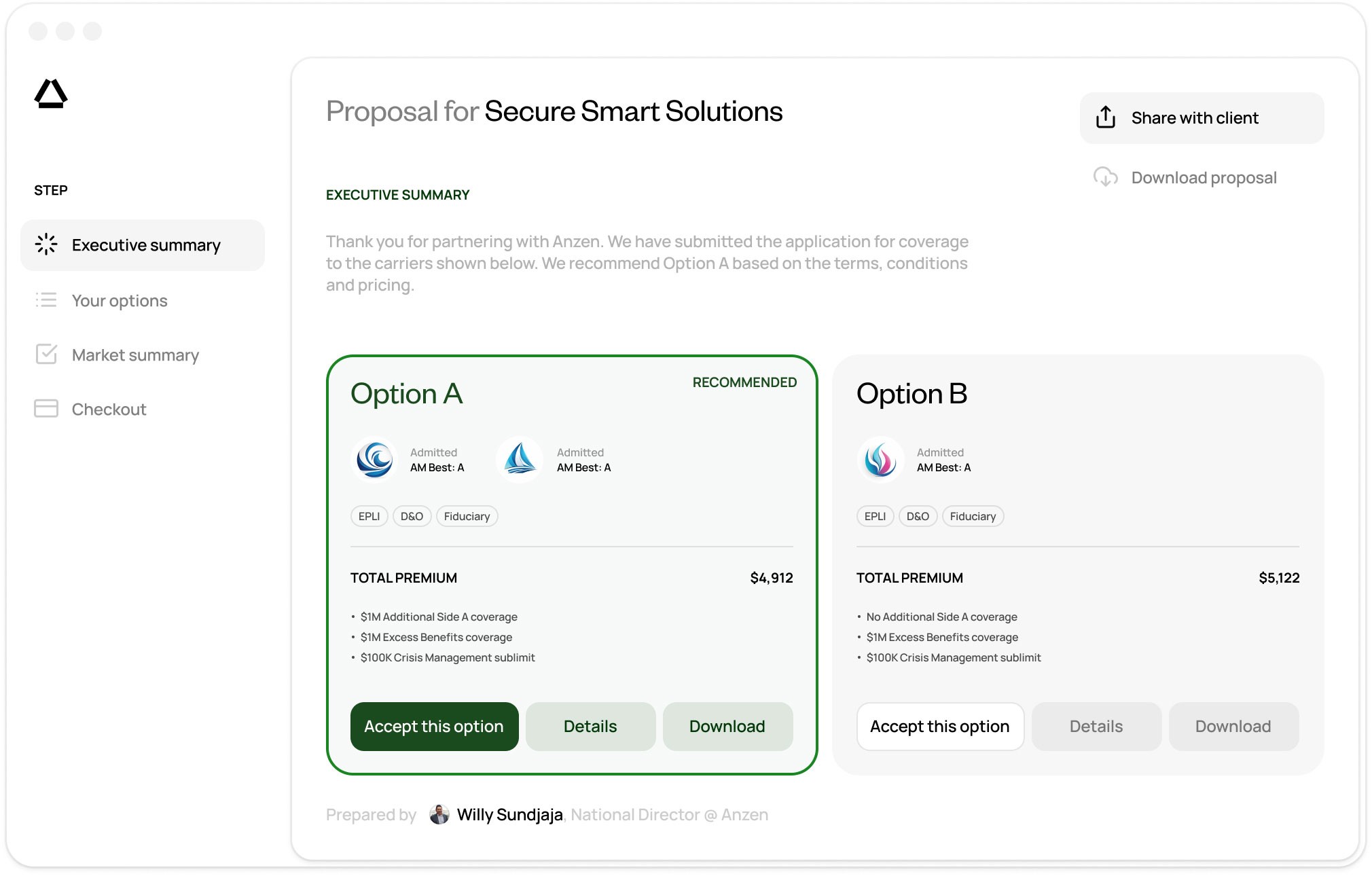 A single solution for specialty risk coverages, with experts focused on executive risk. Leveraging proprietary AI for optimized quotes, streamlined underwriting, and tracking the status of submissions.